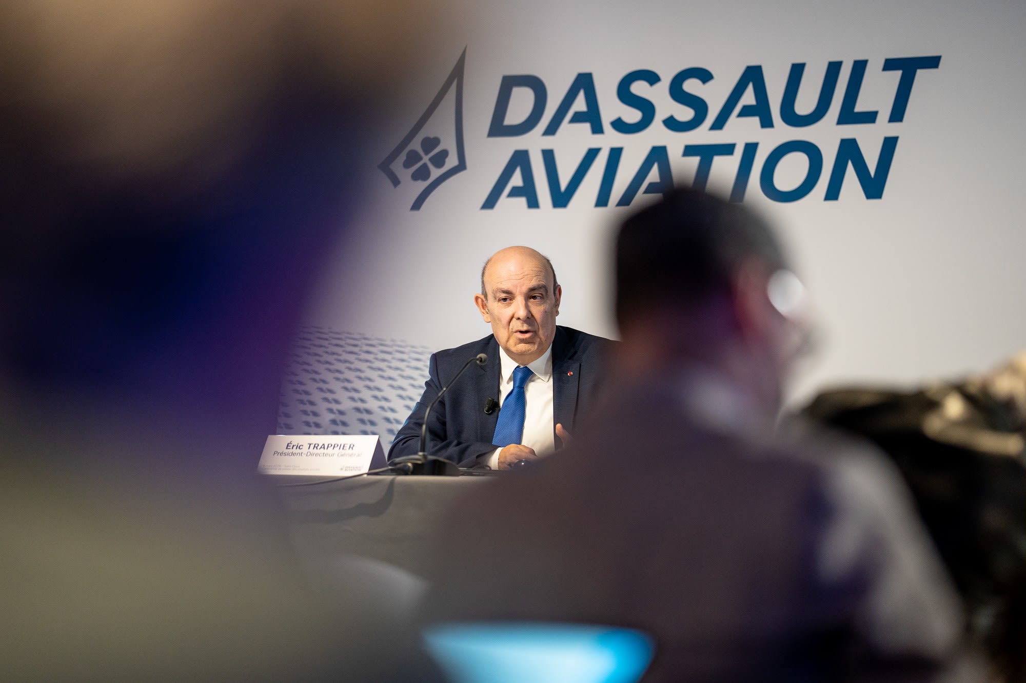 During a press conference, Éric Trappier, Chairman and CEO of Dassault Aviation, presents 2025 annual results on March 4, 2026.